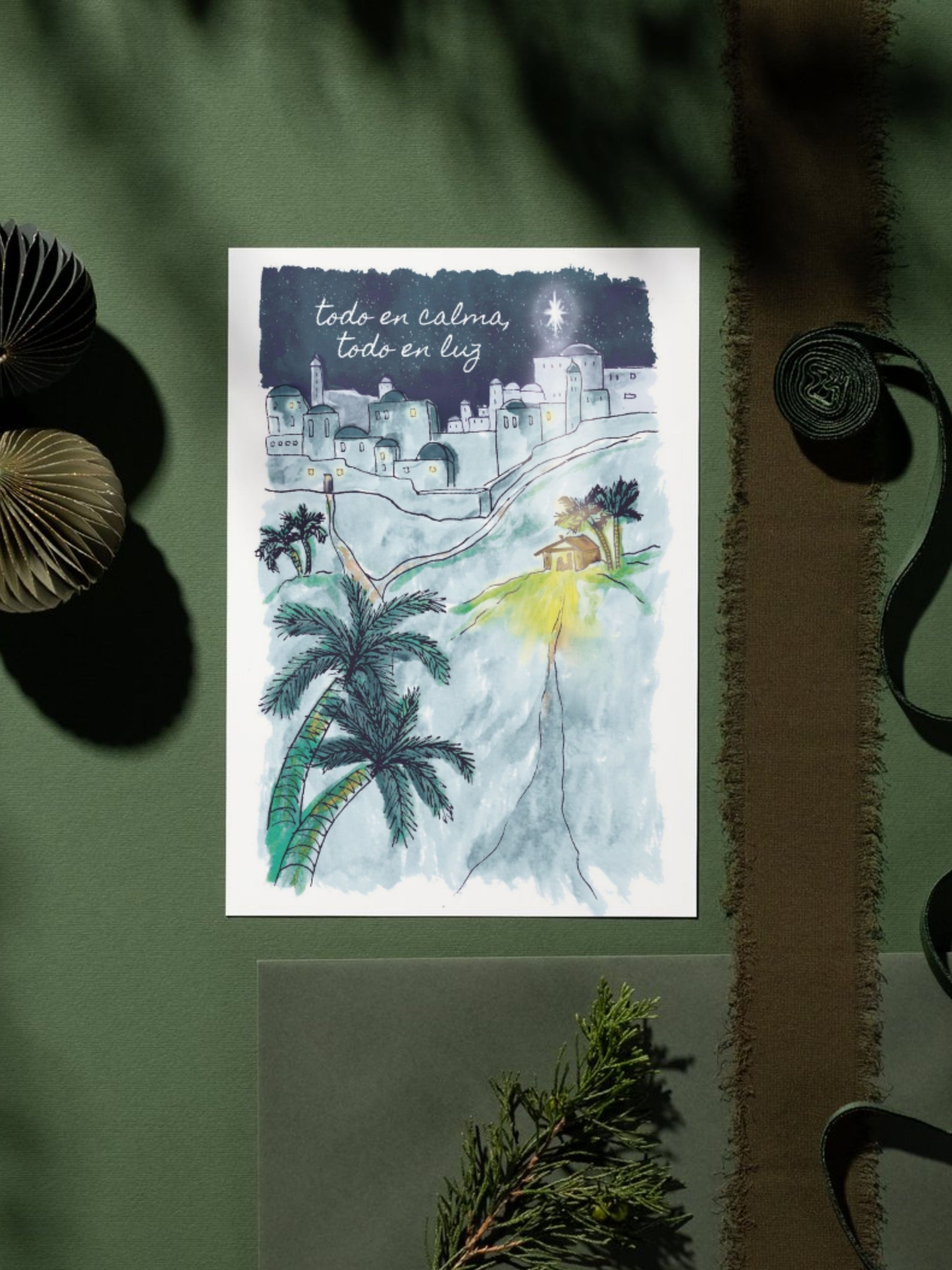Esta postal quiere recordarnos esa paz profunda que envuelve el pesebre: la presencia discreta de Dios que ilumina lo pequeño, lo cotidiano, lo sencillo.